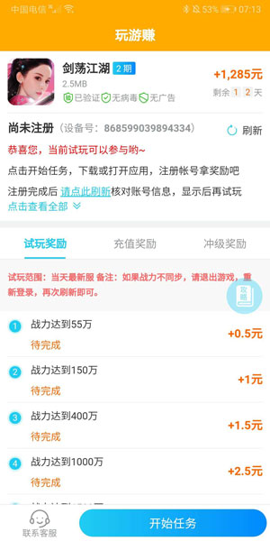 玩游赚是一个以玩手机游戏就能赚零花钱的app,首次1元就能提现,后续5元起提现,超低提现门槛。玩的越多玩的越久,等级越高就赚的越多,记住最好不要充钱玩。对于爱玩游戏的朋友来说这个app再好不过,免费玩游戏还能兼而赚点零花钱,一举两得,仅支持安卓手机下载。